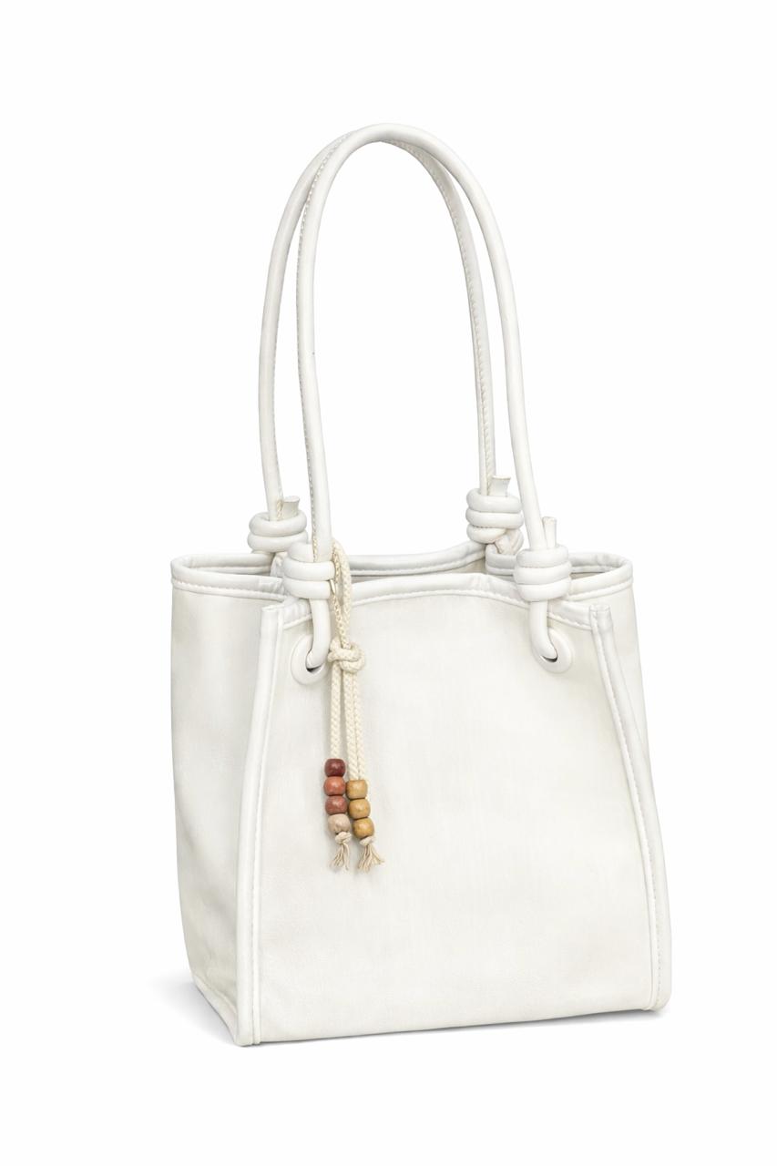 Knotted Handle Leather Tote Bag with Beaded Tassel Charm